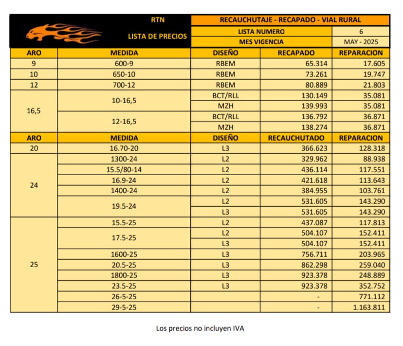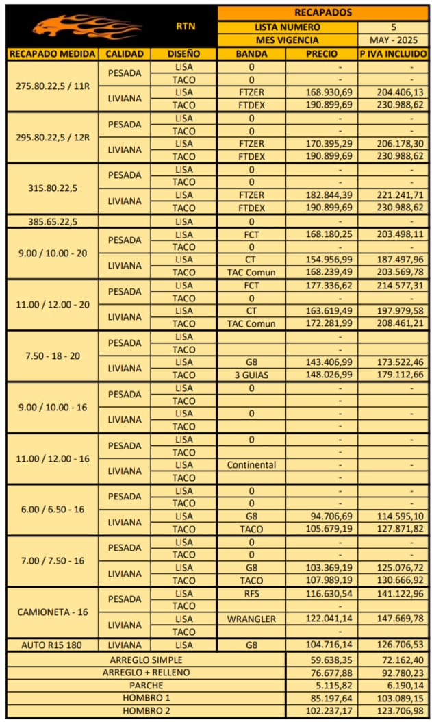 Este servicio consiste en la venta de cubiertas recicladas. RTN, selecciona cascos de primera vida que son rigurosamente controlados. Esta es una buena opción dado que tiene un costo muy inferior a la cubierta nueva y durabilidad similar